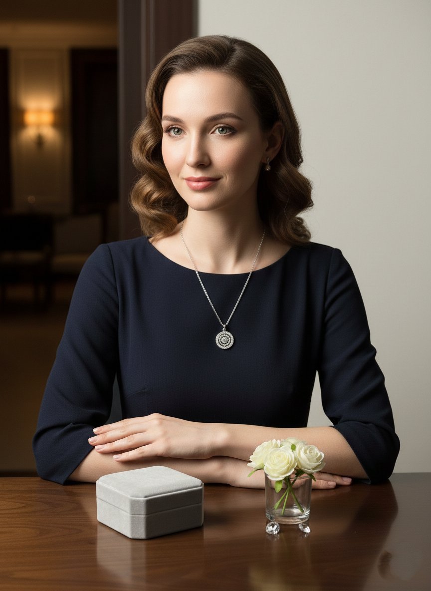 This elegant necklace features a triple-layered circular pendant crafted in a high-shine silver-tone finish. At its heart sits a brilliant-cut center stone, surrounded by two concentric rings—one polished and one pavé-set with shimmering crystals. Suspended from a delicate cable chain, this piece offers a sophisticated “target” silhouette that symbolizes eternity and focus, making it a perfect accessory for both everyday refinement and special occasions.