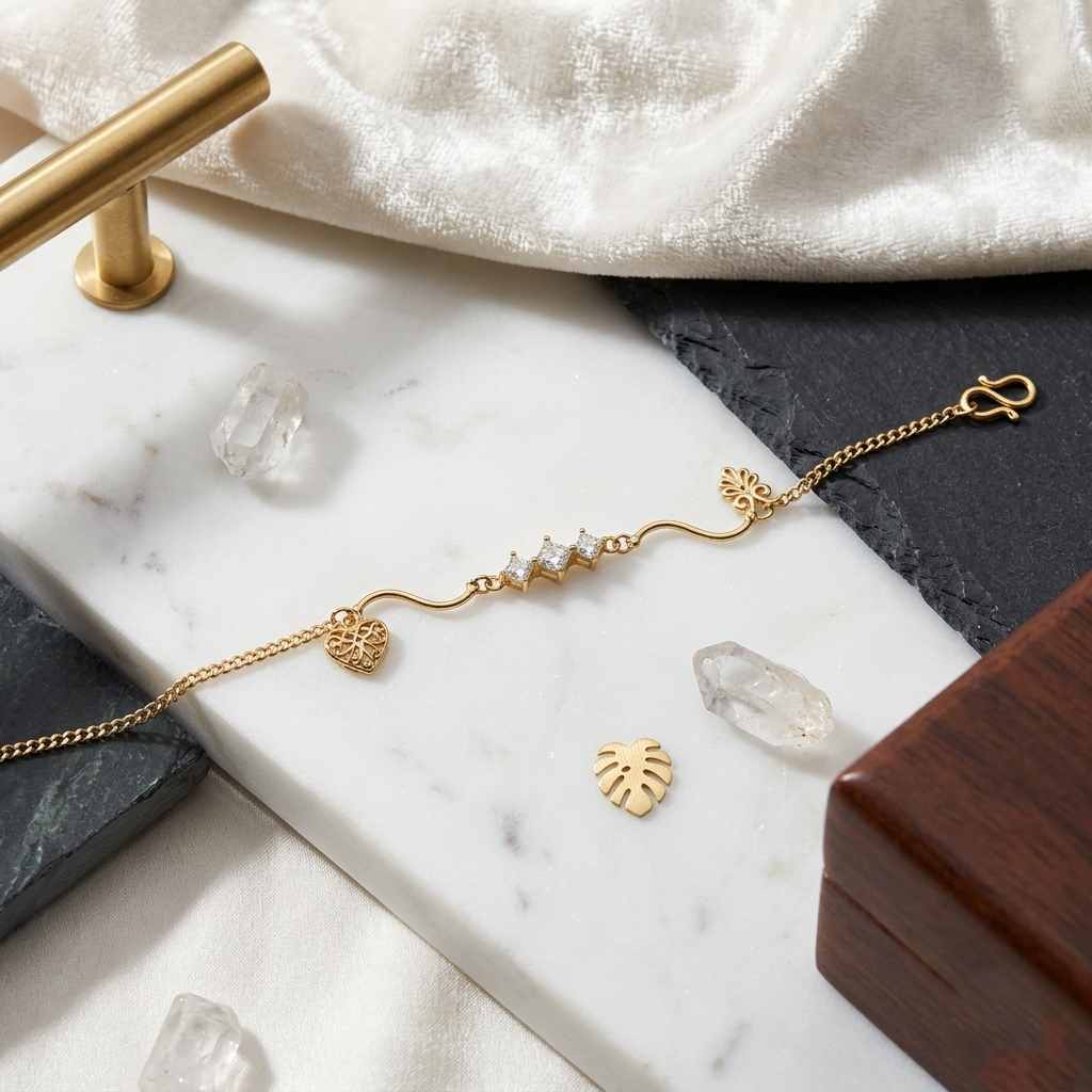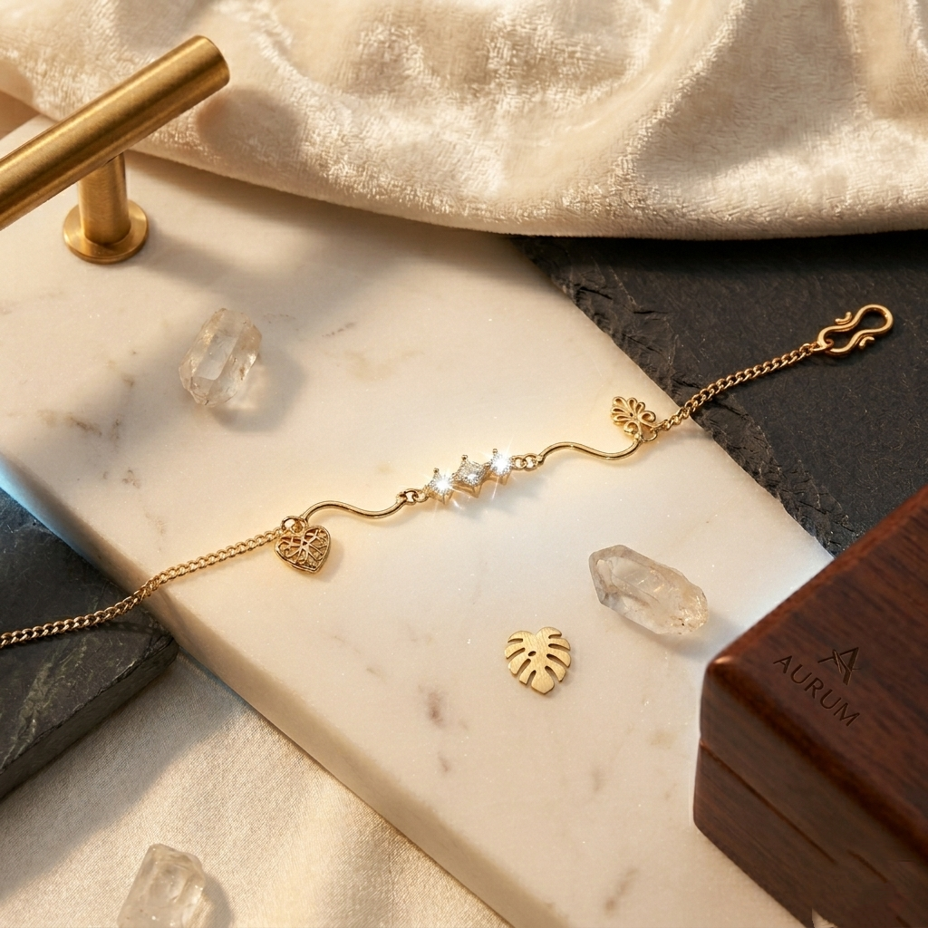 Ethereal Arc” Filigree & Crystal Charm Bracelet