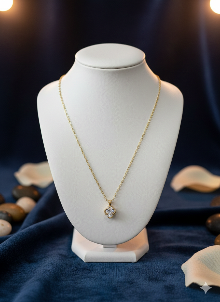 Gold Plated Clover Necklace with Zirconia Heart Pendant – Sparkle Four-Leaf Design