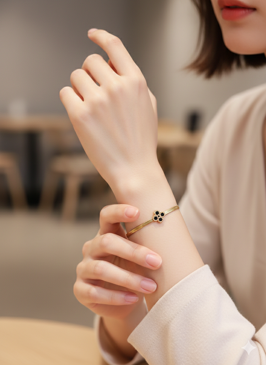 Midnight Clover Gold-Plated Herringbone Bracelet