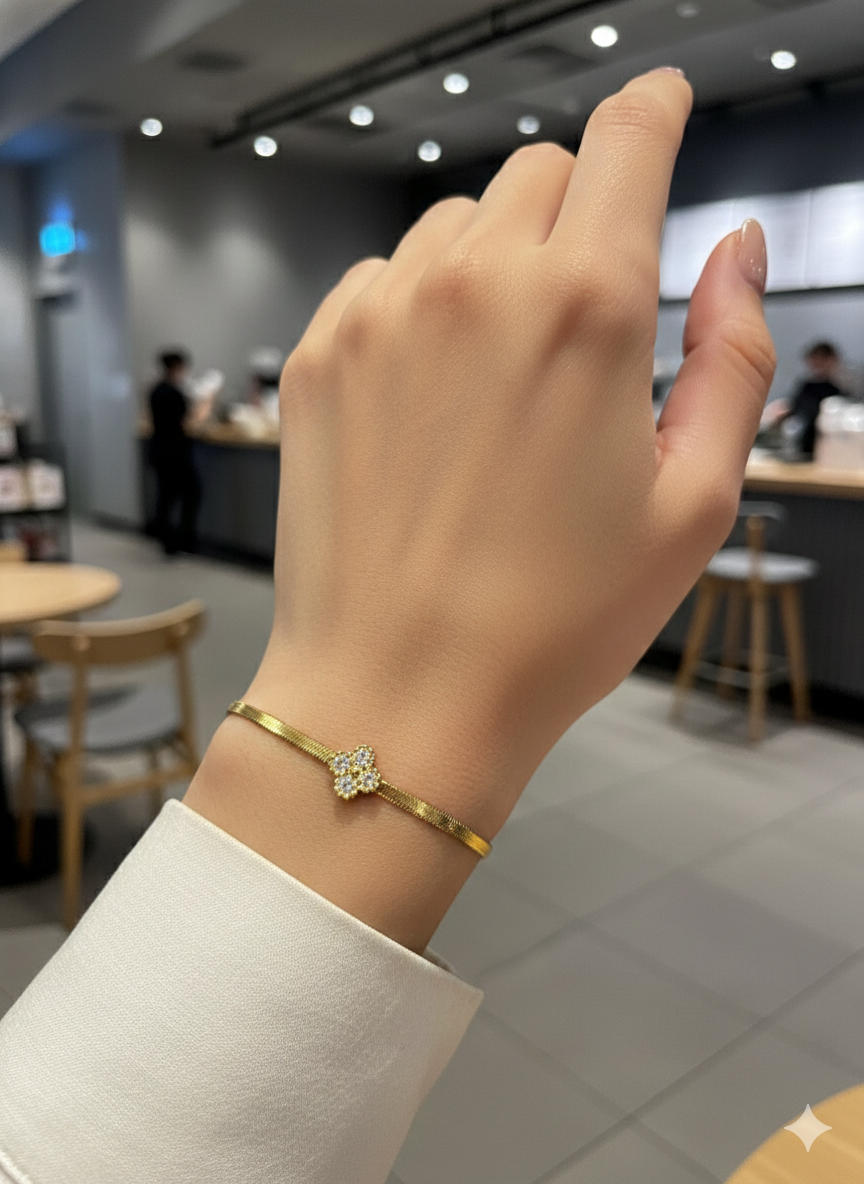 Midnight Clover Gold-Plated Herringbone Bracelet with white stone