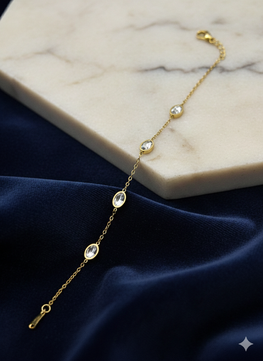 Oval Bezel-Set Crystal Chain Bracelet