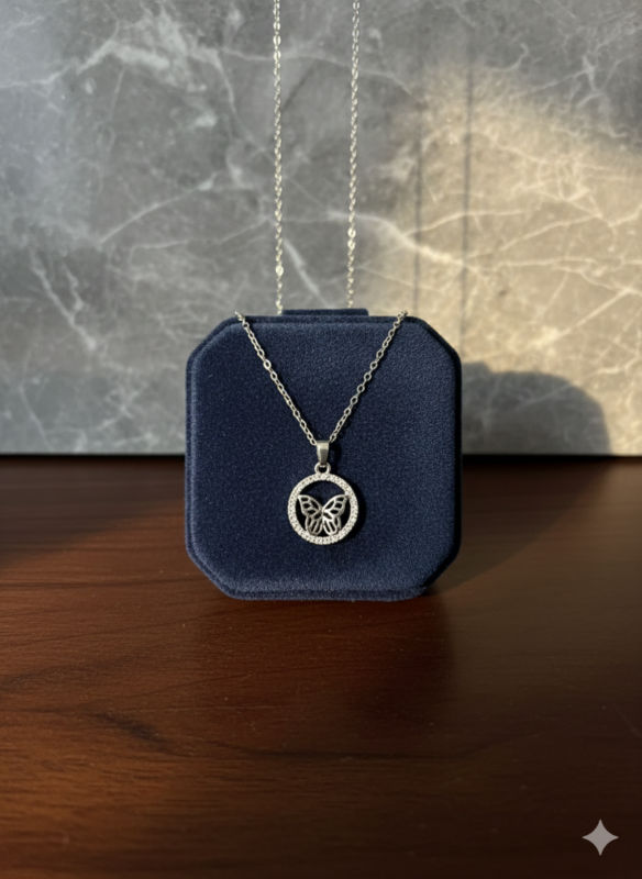 Embrace transformation and grace with our stunning Silver Butterfly Circle Pendant.