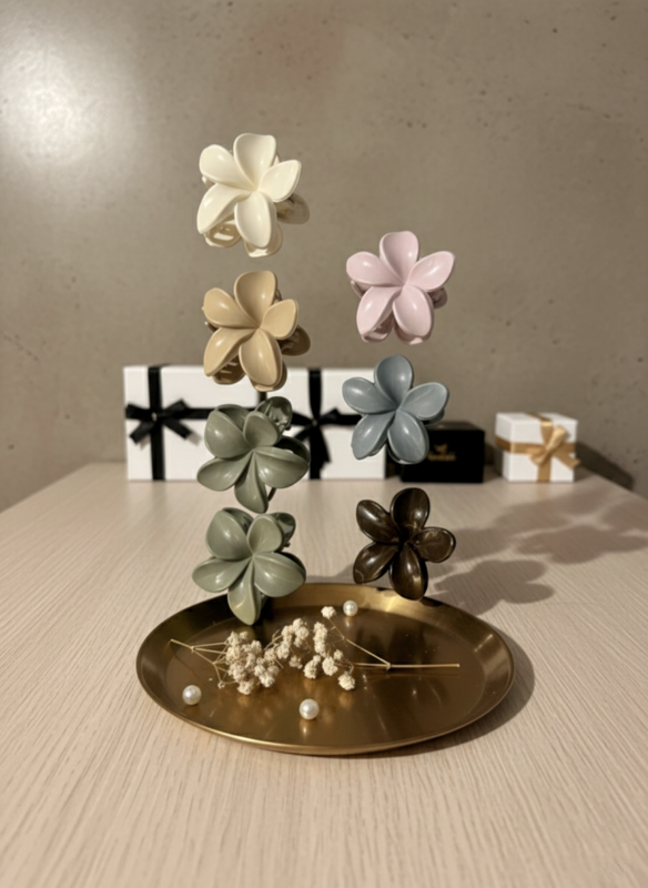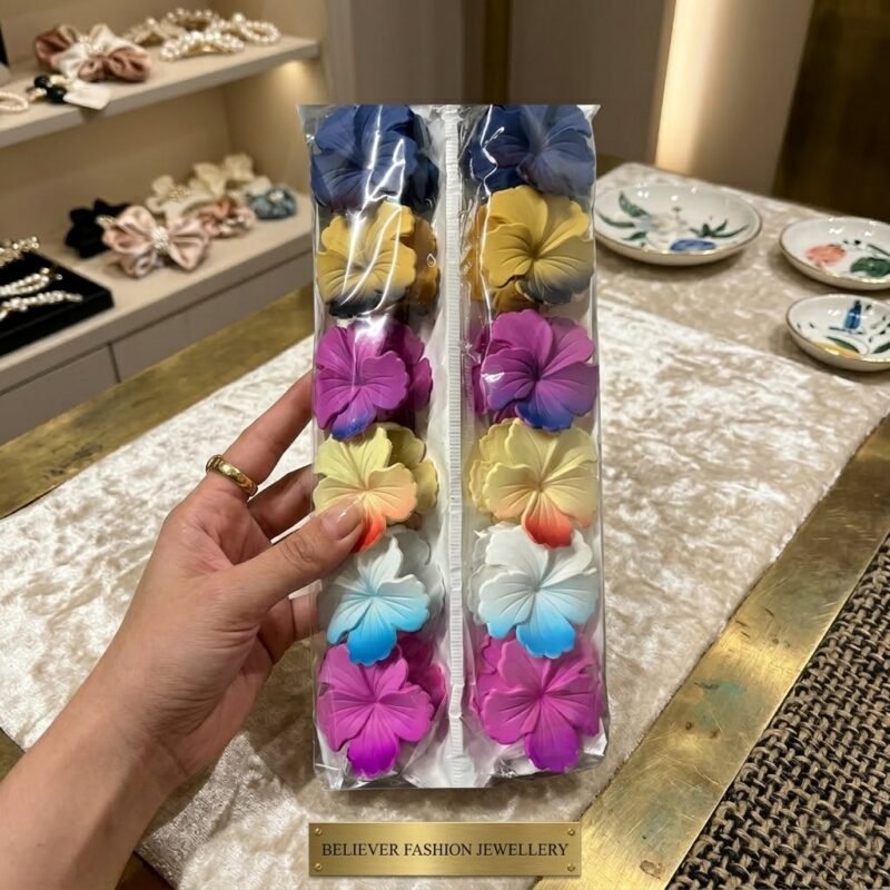 This set features a collection of handmade floral hair clips designed with a classic, vintage aesthetic.