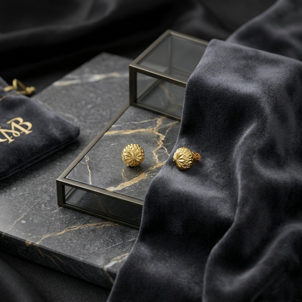 These elegant stud earrings feature a sophisticated sunburst or starburst motif, meticulously crafted in a brilliant gold finish. The circular design is defined by deep, precision-cut ridges that radiate from the center, creating a stunning play of light and shadow that mimics a shimmering celestial body.